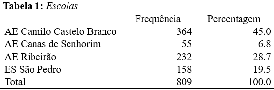 Distribuição dos guiões submetidos pelos alunos participantes, por agrupamento de escolas.